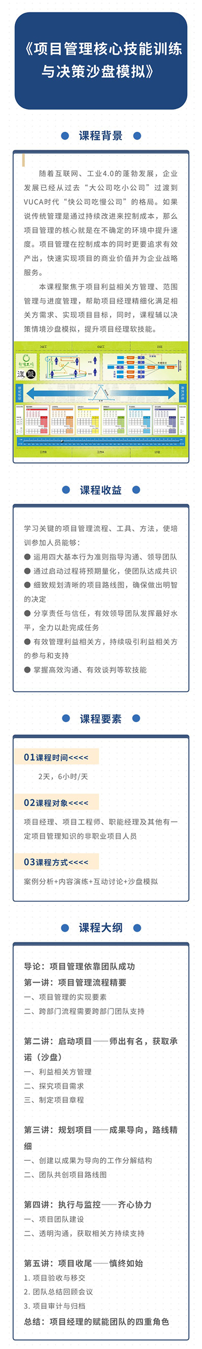 【好課推薦】《項(xiàng)目管理核心技能訓(xùn)練與決策沙盤模擬》